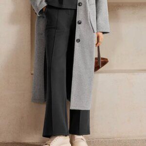 Size Medium. High-rise fit with a clean front seam for a tailored look, elastic waistband for ease, and straight leg silhouette. Features planted pockets and a regular inseam. Easy to style for work, travel, or off-duty wear.