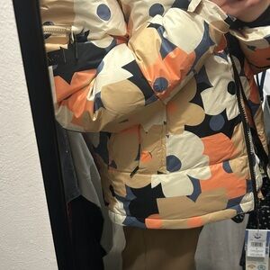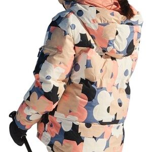 Vibrant Roxy ski jacket with bold patterns. Ideal for winter adventures.