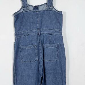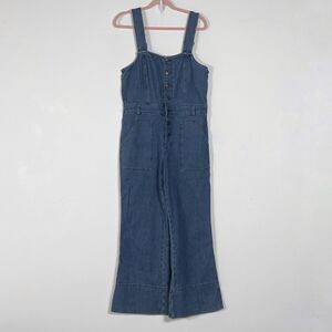 Aerie Denim Kick Flare Overalls Wide Leg Jumpsuit Womens Sz L Blue Button Front