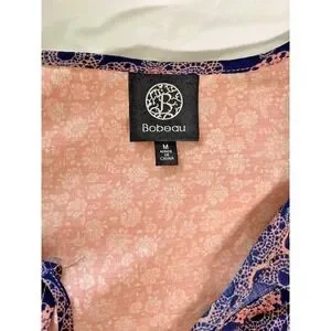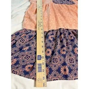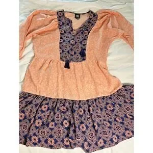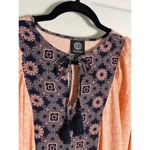 Bobeau Peasant Dress Sz M Coral/Navy Colorblock Boho Tassels