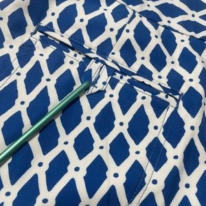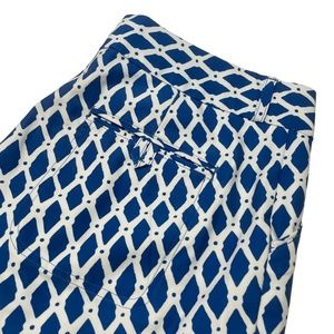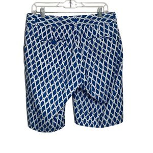 For Sale is this: Peter Millar 8 Ladies Wicking Blue White Print Pocket Shorts Missing back Button