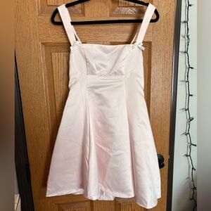 Lulu's Pink Satin Babydoll dress w/ bow tie in the back