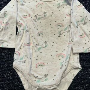 Charming bodysuit with unicorns and rainbows. Soft and comfortable fabric. Ideal for everyday wear.