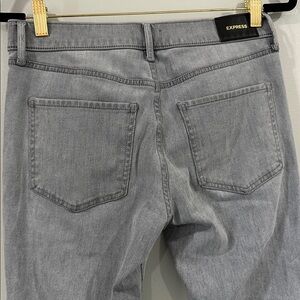 Express Skinny Mid-Rise Button Fly 4-Way Hyper Stretch Grey Jeans, Size 6R