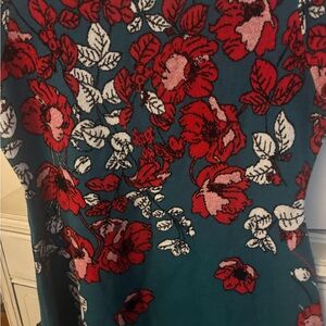 Chic mini dress with bold floral pattern. Features vibrant teal and red hues. Ideal for stylish outings.