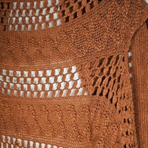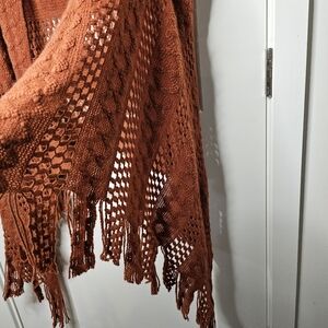 Women's Burnt Orange Open Knit Fringe Shawl Vest Boho Festival Layer OS Western