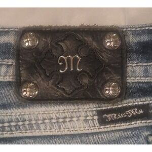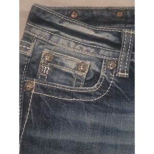 MISS ME Denim Women's 29 JE048C6 Crop Embroidered Thick Stitch Blue Jeans