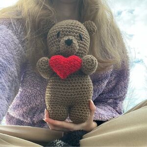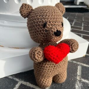 Hand Crocheted Honey the Valentine’s Day Bear Stuffed Animal Plushie!