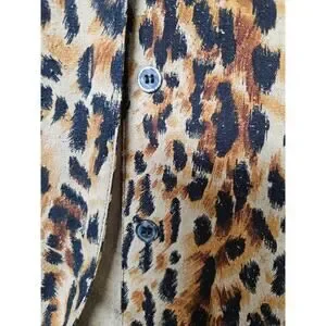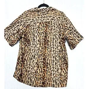 Vintage Cezar 100% Raw Silk Leopard Large Button-Up Short Sleeve Collar Blouse