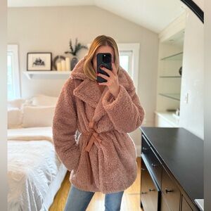 Revolve Dundas X Stevie Faux Fur Teddy Coat — Dreamy Blush, Size Medium