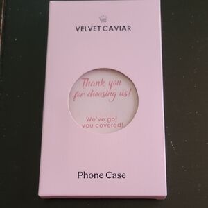 Chic Velvet Caviar phone case with newspaper print. Includes a handy ring holder for easy grip.