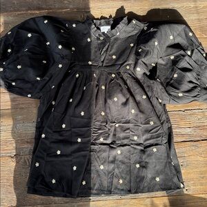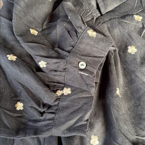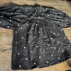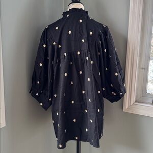 Entro black babydoll mini gold embroidered flowered poof sleeves NWOT size XL