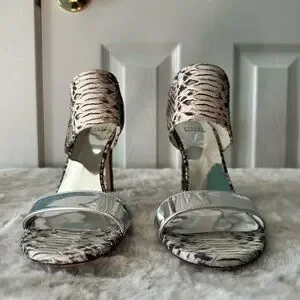 Stuart Weitzman Snakeskin & Silver Chic Strappy Heels | Size 9.5