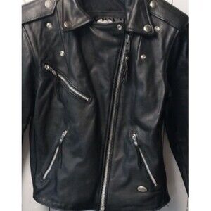 Harley Davidson Women's Leather Jacket Size Small Black Motorcycle Biker Zip Up