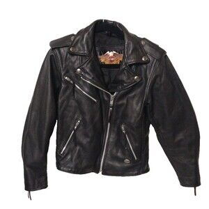 This biker-style jacket is a collectible item that showcases the iconic Harley-Davidson brand.