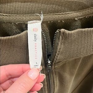 Stylish olive green long sweater from anthropology, with front pockets and zip closure. Perfect for casual wear.