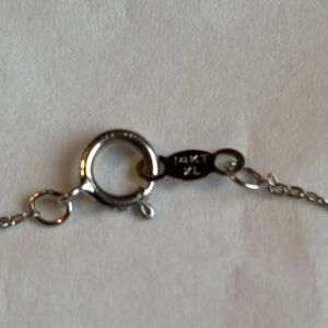 Dainty 14k white gold necklace with diamond pendant. Chain is 16” long. Could use a good polish and cleaning. Been in the box for 20+ years. Crafted by Kay Jewelers.