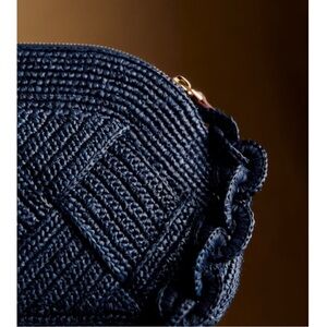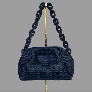 SEZANE Navy Blue Woven Braided Raffia Shoulder Bag Chain Link Strap Isabelle Bag