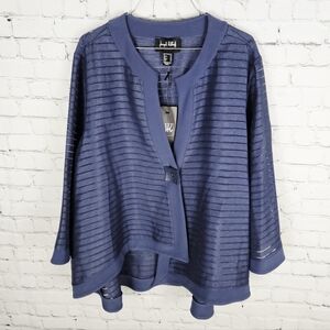 JOSEPH RIBKOFF | sheer stripe three-quarter sleeve asymmetrical jacket. New with tags.