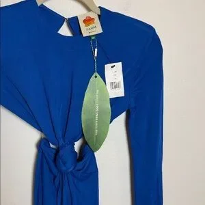 FARM RIO Blue Knot Cut-Out long sleeve dress xxs nwt