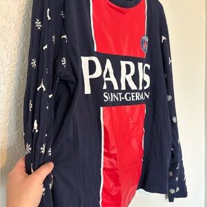 Show your support with the Paris Saint-Germain women's long sleeve tee. Featuring a striking red and navy blue design, this top is perfect for fans. Comfortable and stylish for everyday wear.