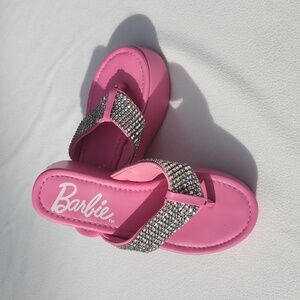 Features: Sparkling multi-row rhinestone straps, "Barbie" script logo on the padded footbed, and a durable rubber outsole.