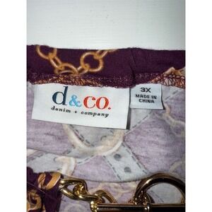 Keywords: Denim & Co., women's blouse, 3XL, multicolor, geometric pattern, V-neck, long sleeve, casual wear, office wear, comfortable fabric, pre-owned, versatile, stylish, basic style, women's fashion.