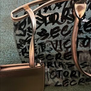 Chic tote bag set with bold branding. Features a stylish black and gold design. Perfect for carrying essentials.