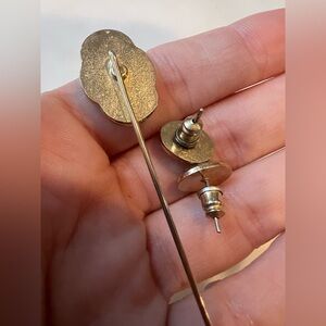 Vintage Cameo Lapel Pin & Stud Earring Set | Victorian Style