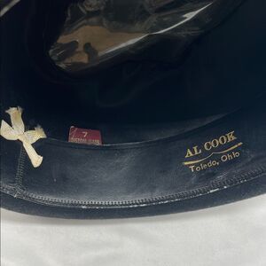 This is a great vintage Hal Joseph black hat with a blue feather held in with a hat pin! It is a size 7.