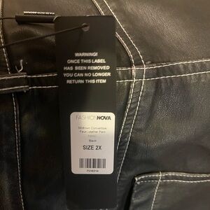 Fashion Nova Midtown convertible zip faux leather black wide leg pants NWT 2X