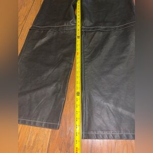 Black faux-leather wide-leg with zipper at the knee. Trendy and comfy.