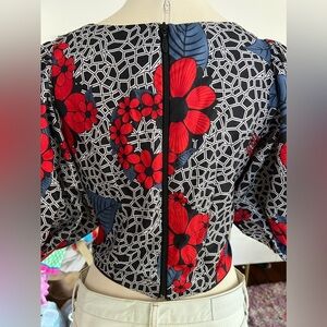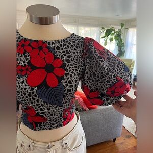 This is the cutest top! Loving the puffy sleeve trend and this little top! Fitted body with a full center back zip. The poppy red floral pattern is also super fun!