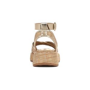 About the brand: Laid-back, trendsetting styles. Nylie Strappy in sand dune multi faux raffia faux leather and fabric Buckle closure Lightly padded insole TPR 1.625in heel Please note: All measurements are approximate and were taken from a size 6; slight variations may occur. Imported