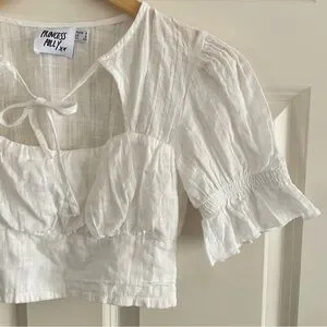 Princess Polly Crop White Puff Sleeve Blouse Boho Feminine Balletcore Beach