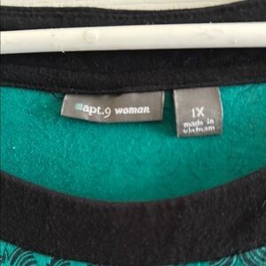 This Apt. 9 blouse showcases a rich green color with pleated detailing at the neckline, creating a relaxed and flowing silhouette. The 3/4 sleeves add a touch of elegance, making it ideal for casual wear. Crafted from lightweight fabric, it ensures comfort and style throughout the day.