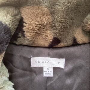 Like new condition without any signs of wear Socialite black and dark green camouflage bomber jacket in women’s size small. Ultra soft fluffy fabric. No signs of wear, LIKE NEW.