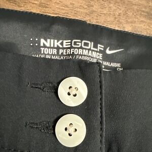 The Nike Golf Tour Performance Shorts for women in size 6 are designed for comfort and performance on the golf course or for everyday wear. These black shorts feature a solid pattern and a chino style, with a flat front and a 4-inch inseam. Made from a blended fabric of polyester and spandex, they offer stretch for ease of movement. Perfect for travel, activewear, or casual occasions, these shorts are a classic and sporty addition to any wardrobe. With the Nike brand and athletic features, these shorts cater to a lifestyle of comfort and style.