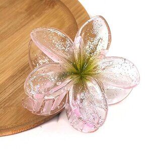 🌸 Pink Glitter Plumeria Hair Clip 🌸