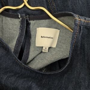 Reformation Pippa Sleeveless Denim Midi Dress Fit Flare A-Line Blue Liffey Wash