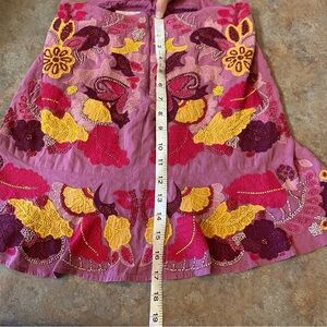 Anthropologie Maeve Embroidered Mini Dress US Size 2 Beaded Floral Open Back