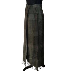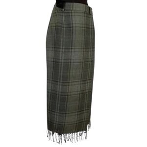 Lauren Ralph Lauren Plaid Wool Fringe Midi Skirt Olive Green Women’s 18W