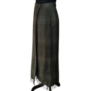 Ralph Lauren skirt, plaid midi skirt, wool skirt women, fringe skirt, olive green skirt, plus size wool skirt, heritage style, equestrian style, academic chic, timeless fashion