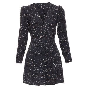 REFORMATION Courtney black star galactic print V neck mini dress US2 SReference: ECLO/A00010Brand: ReformationModel: CourtneyMaterial: Viscose, BlendColor: Black, KhakiPattern: StarClosure: ButtonExtra Details: Buttons all the way down. Hidden button inside waist. Slight puff shoulders with small shoulder pad.Made in: United StatesCONDITION:Condition: Unworn in mint condition, with tags. Comes with: Style code present (Generic) Designer tags. SIZINGDesigner size: US2Size reference: US2-4 / UK8 / IT40 / FR36 / XS-SMEASUREMENTS: Shoulder to shoulder: 34cm / 13.3"Chest: 41cm / 16"Waist: 32cm / 12.5"Hip: 45cm / 17.6"Length: 81cm / 31.6"Sleeve length: 59cm / 23"Measurments: length: 810 mm strap length: 590 mm