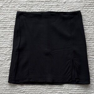 This is a high-rise A-line mini skirt with a side slit. It's cut from super soft bi-stretch twill that's made with recycled materials.