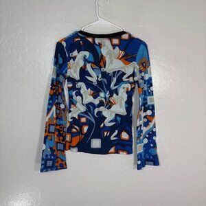 Hayes Shirt Womens Small Blue Psychedelic Graphic V Neck Long Sleeve Top Retro