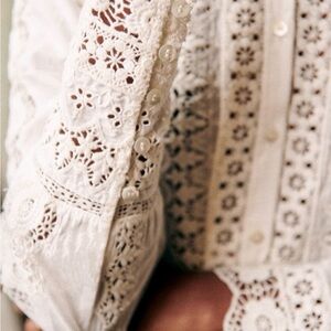 - Guipure lace strips on body, sleeves and cuffs
