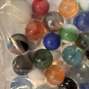 This product is a lot of vintage marbles, including Banana Cats Eye, Blizzard Helmets, and other styles. Made in the United States before 1970, these machine-made marbles feature a swirl style and are not modified. Perfect for collectors or enthusiasts of vintage marbles, this estate find offers a unique and nostalgic addition to any collection.