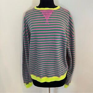Free People Classic Striped Oversized crewneck pink green