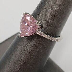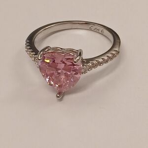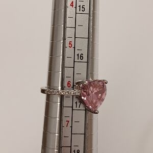 Nwot Heart-Shaped Pink Stone 18k White Gold Plated Valentines Ring Size 6